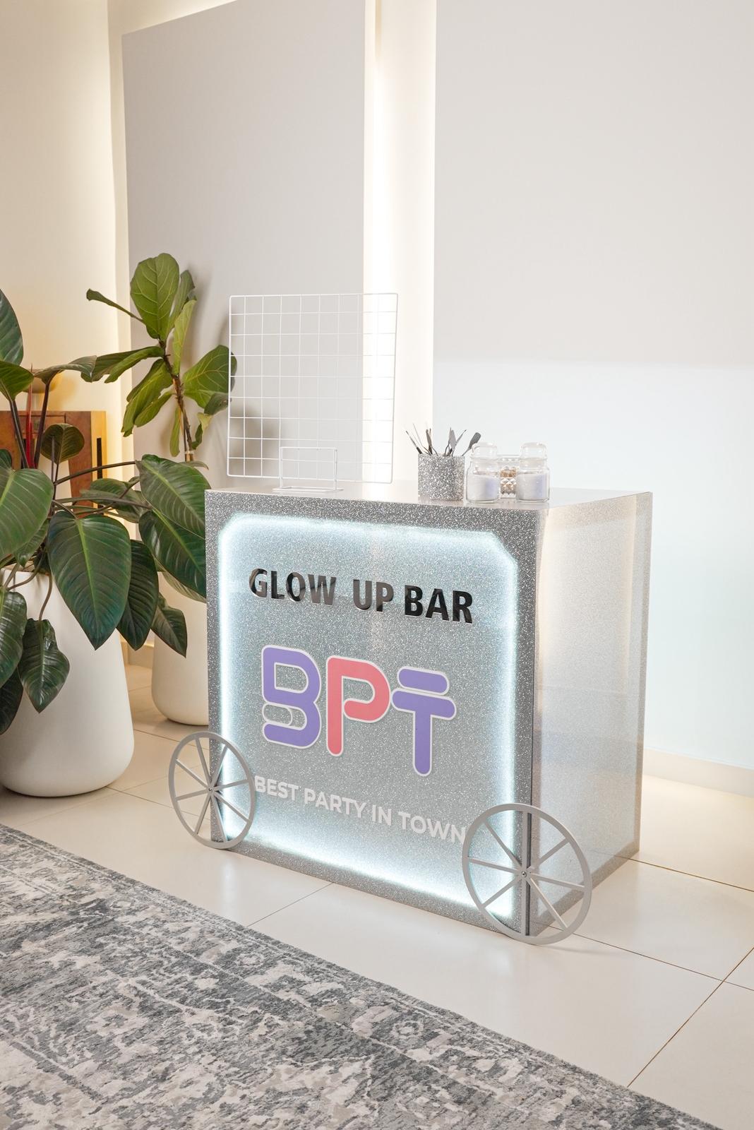 Glow Up Bar is our exclusive photo-decor stand, designed to add a unique sparkling touch to your pictures a new concept never seen before in the Middle East.